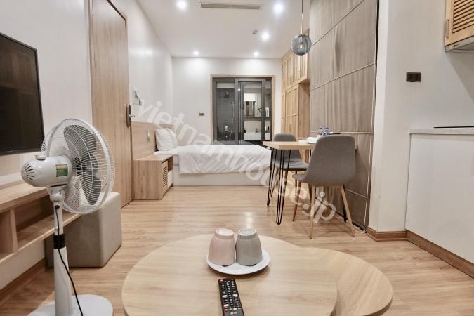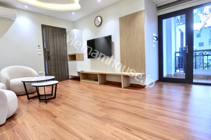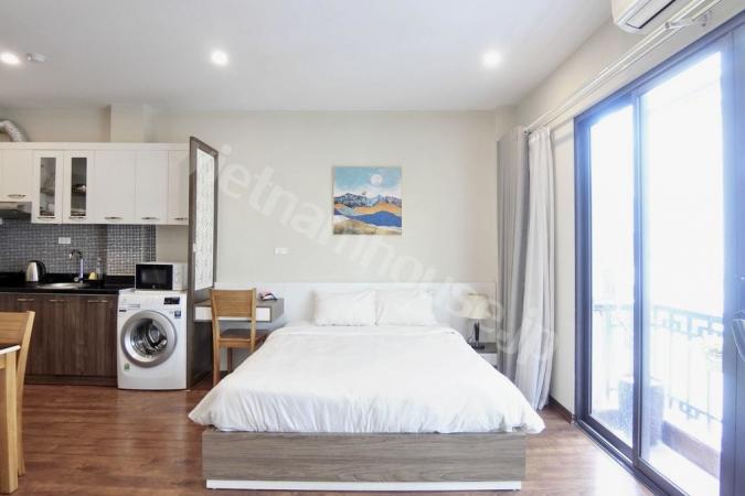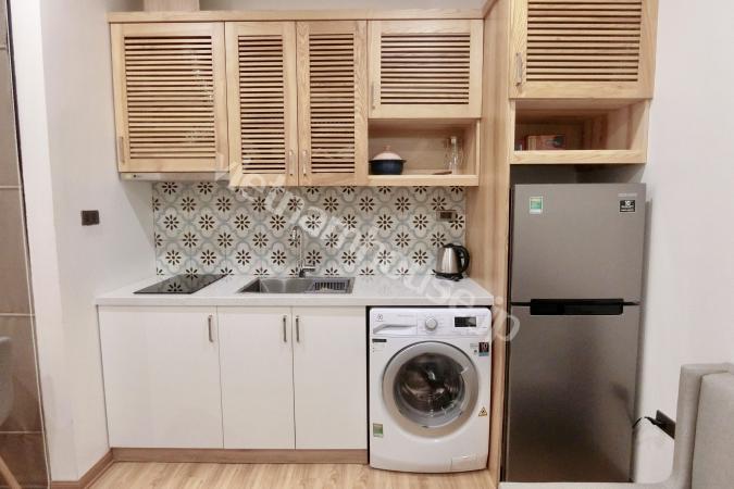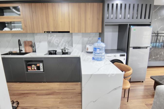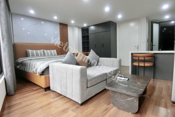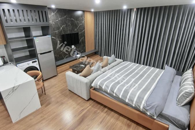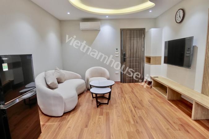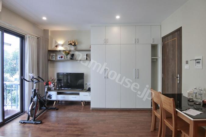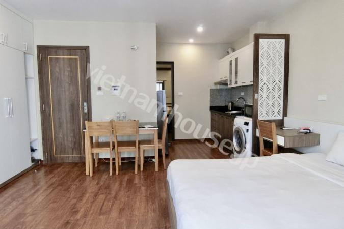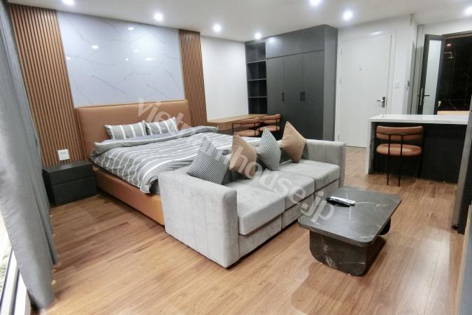 Căn hộ một phòng ngủ mới hoàn thiện được trang bị đầy đủ tiện nghi từ tivi, tủ lạnh, máy giặt sấy và bồn tắm, bệ xí thông minh. Căn hộ nằm ngay gần Đại sứ quán Nhật, khu Linh Lang nơi tập tr...