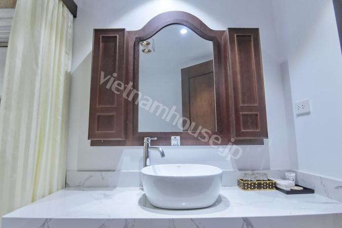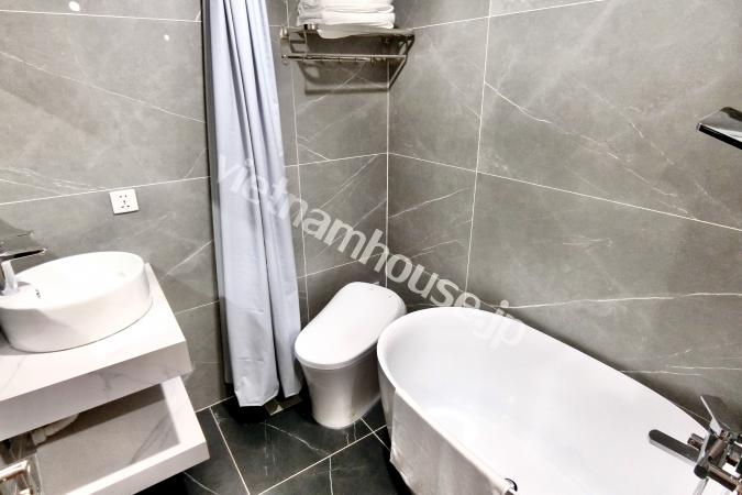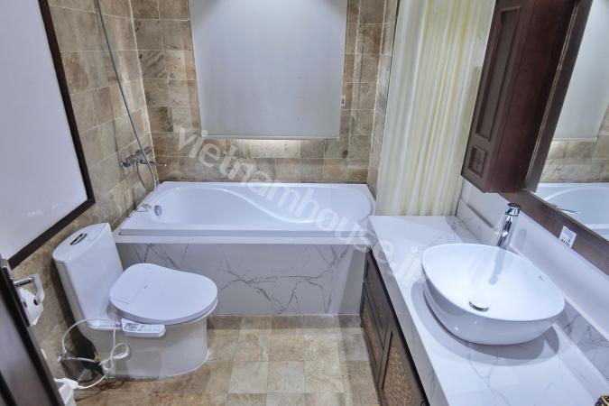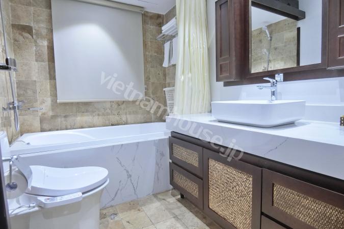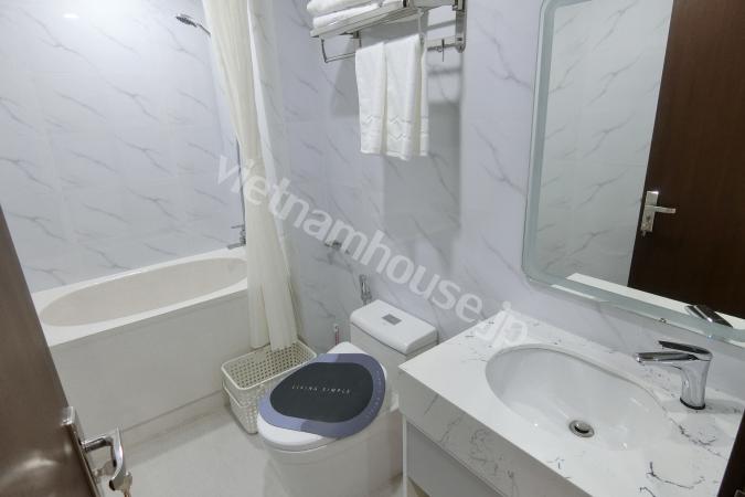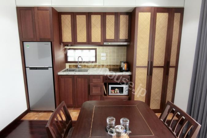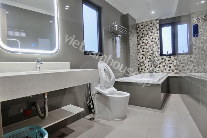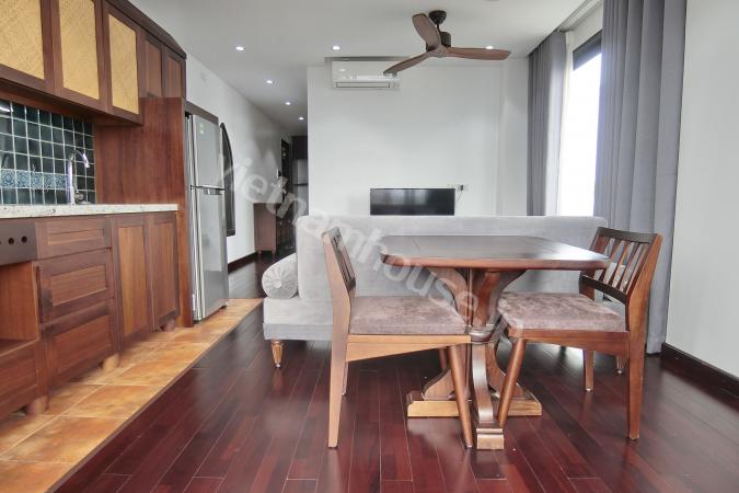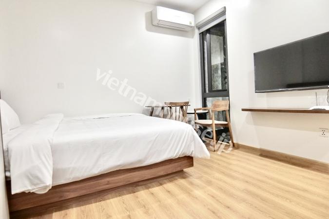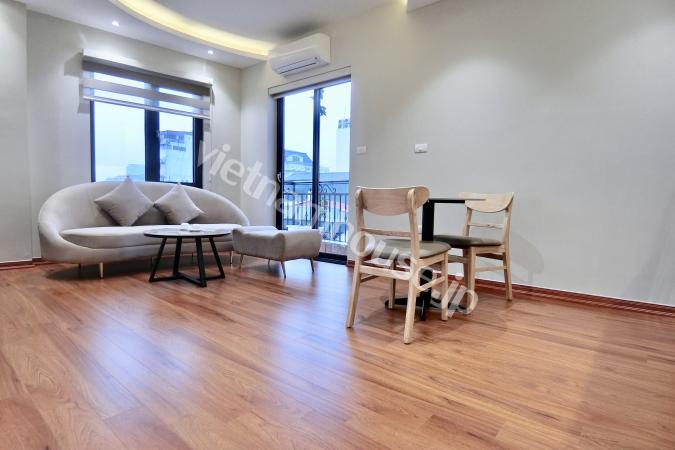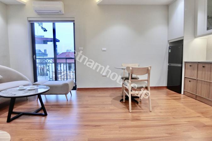 Căn hộ một phòng ngủ mới hoàn thiện được trang bị đầy đủ tiện nghi từ tivi, tủ lạnh, máy giặt sấy và bồn tắm, bệ xí thông minh. Căn hộ nằm ngay gần Đại sứ quán Nhật, khu Linh Lang nơi tập tr...